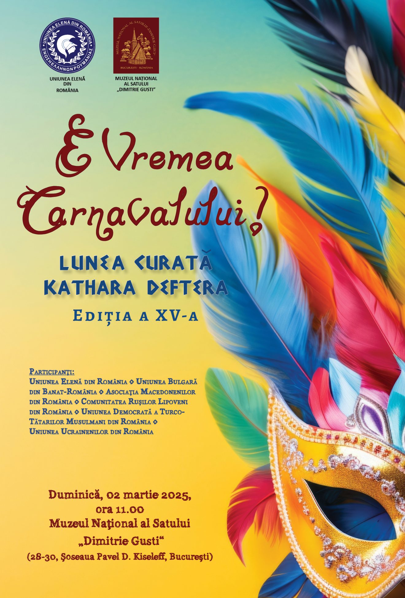 La Muzeul Național al Satului ”Dimitrie Gusti” din București, Uniunea Elenă din România a organizat ediția cu numărul 15 a proiectului „E vremea Carnavalului! Lunea Curată – Kathara Deftera”.