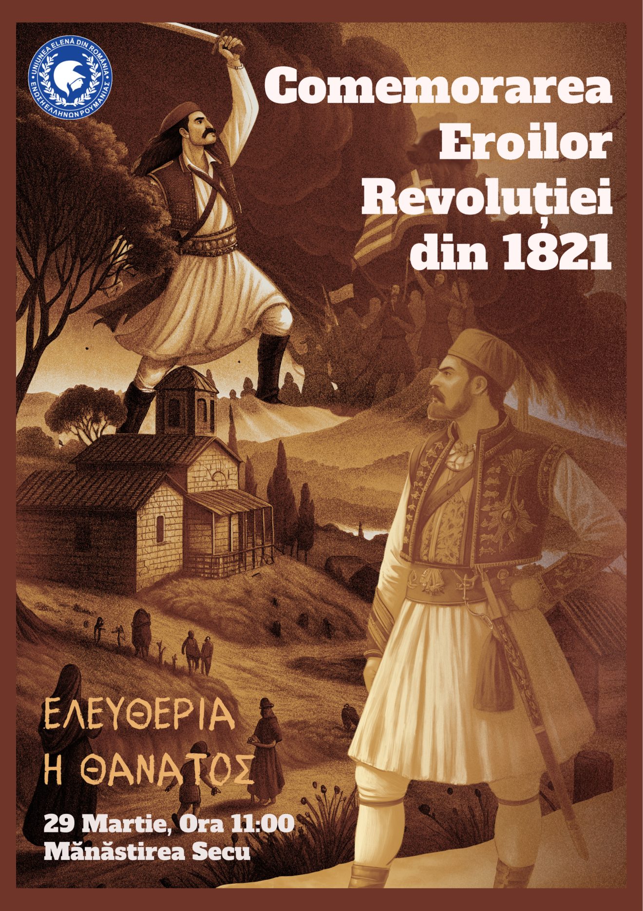 Cu prilejul sărbătoririi Zilei Naţionale a Republicii Elene, Uniunea Elenă din România a organizat sâmbătă, 29 martie 2025, la Mănăstirea Secu, jud. Neamț, Comemorarea Eroilor Revoluției din 1821.