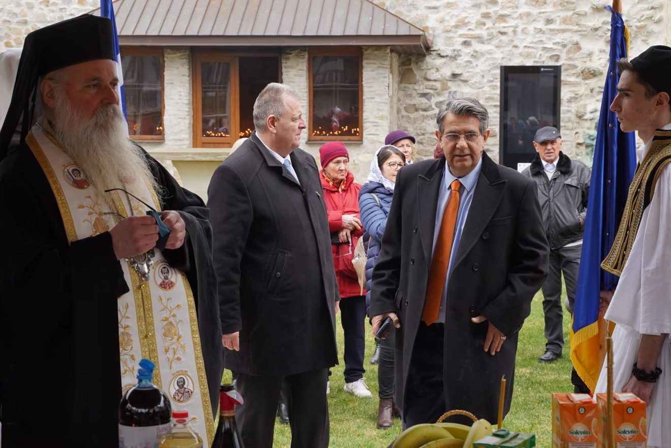 După slujba de pomenire oficiată de pr.arhim. Vichentie Amariei, starețul mănăstirii Secu, au fost depuse coroane de flori la Monumentul eroilor greci pentru eliberarea de sub dominaţia otomană.