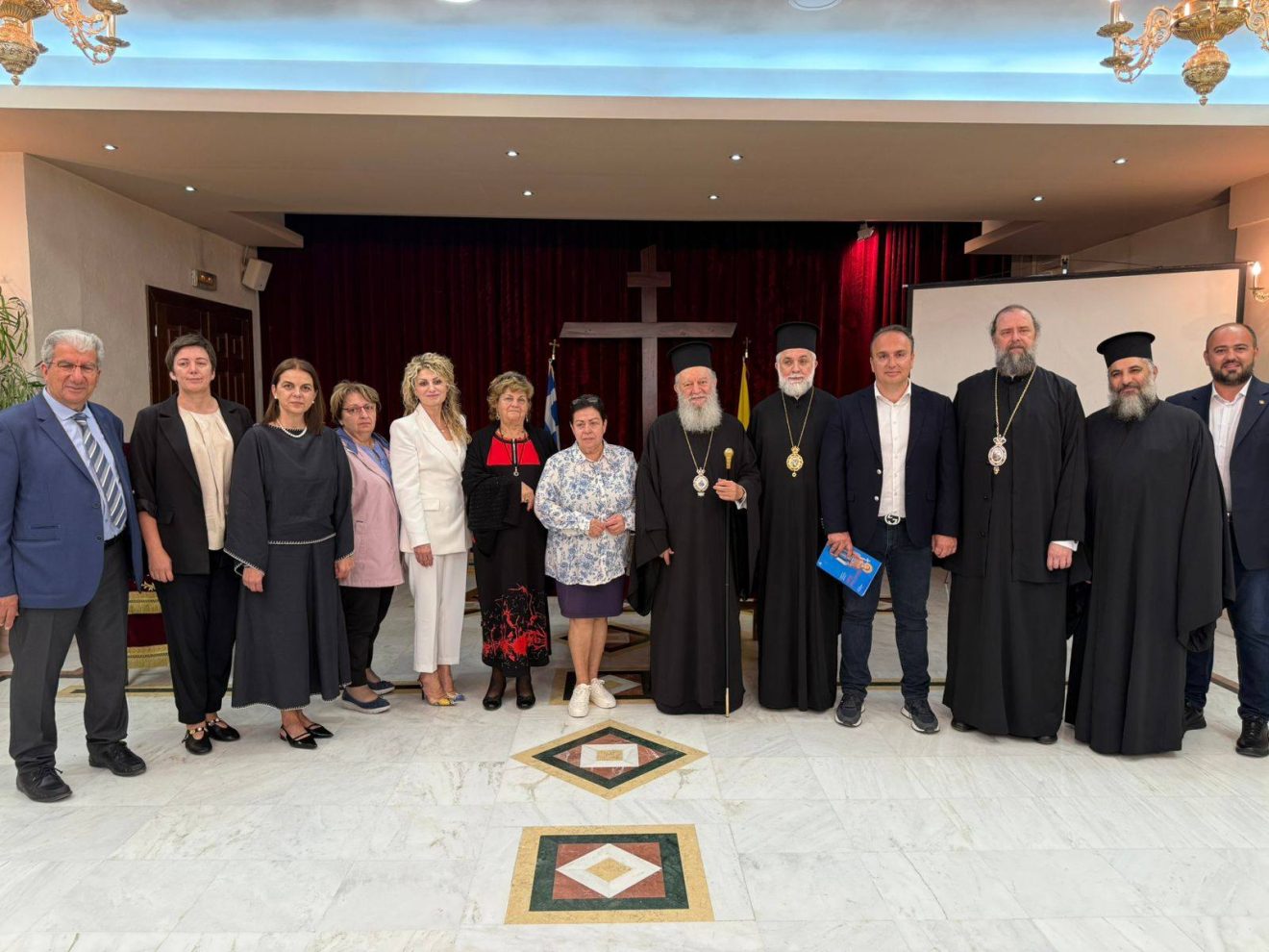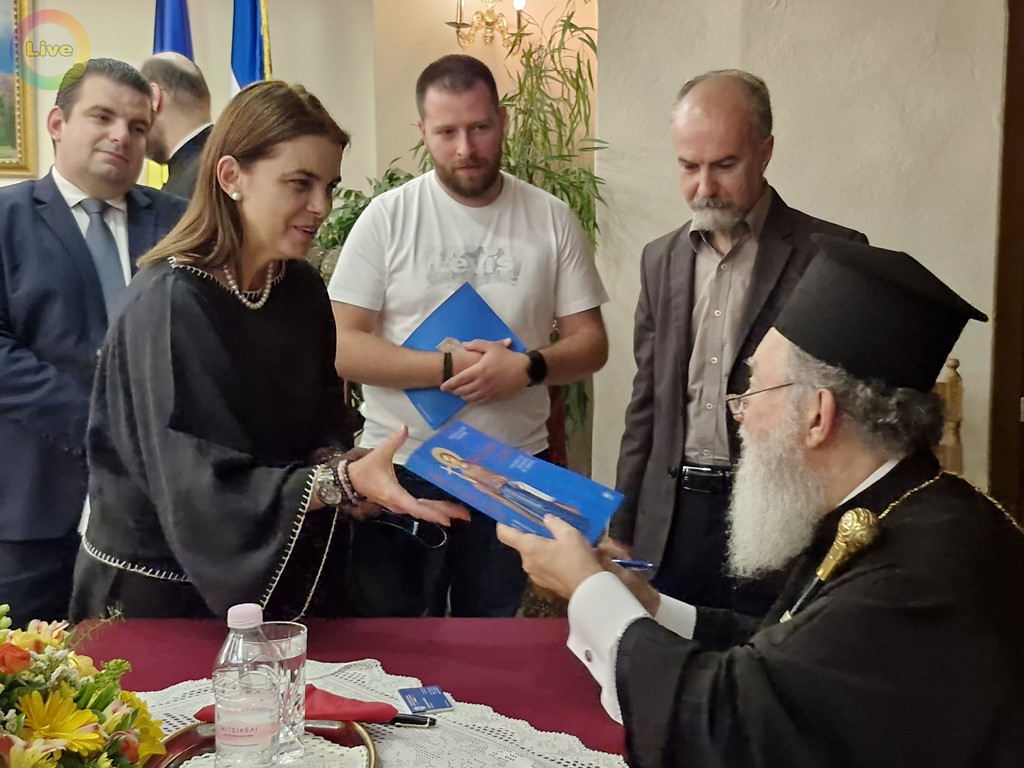 La evenimentul organizat de Uniunea Elenă din România cu sprijinul Primăriei Istiea – Edipsos au participat Preasfințitul Filoteu, Mitropolit al Salonicului, Preasfințitul Hrisostom, Mitropolit de Chalkida, Istiea și Sporadele de Nord, Preasfințitul Damaschin, Mitropolit al Velestinului, Primarul Orașului Istiea-Edipsos Ioannis Kontzias, personal al corpului diplomatic acreditat în Grecia, printre care reprezentanții României doamna Mioara Pituț, prim-colaborator la Ambasada României de la Atena și doamna Georgiana Gabriela Iacobuță, gerant interimar al Consulatului General al României la Salonic, doamna subsecretar de stat în cadrul Ministerului Culturii Irina Maria Cajal, reprezentanți ai autorităților locale ale Salonicului și reprezentanți ai Uniunii Elene din România.