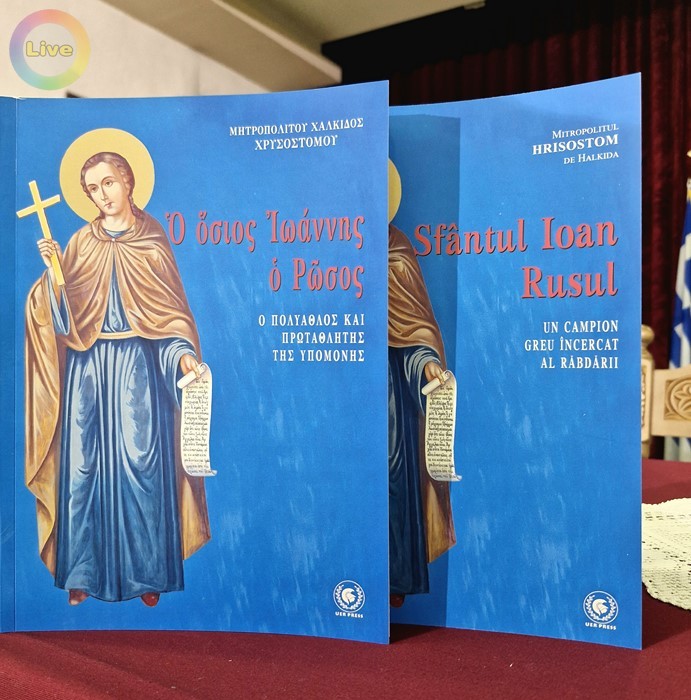 Στο πλαίσιο της 21ης Διεθνούς Έκθεσης Βιβλίου Θεσσαλονίκης, την Παρασκευή, 9 Μαΐου 2025 και ώρα 18:00 στο Πνευματικό Κέντρο του Ιερού Ναού «Παναγίας Δεξιάς» Θεσσαλονίκης έλαβε χώρα η παρουσίαση του βιβλίου: «Ο Όσιος Ιωάννης ο Ρώσος- Ο Πολύαθλος και Πρωταθλητής της Υπομονής», του Σεβασμιότατου Μητροπολίτη Χαλκίδας, Ιστιαίας και Βορείων Σποράδων κ. Χρυσοστόμου, στην ρουμανική γλώσσα των Εκδόσεων UER Press, Βουκουρέστι 2025.