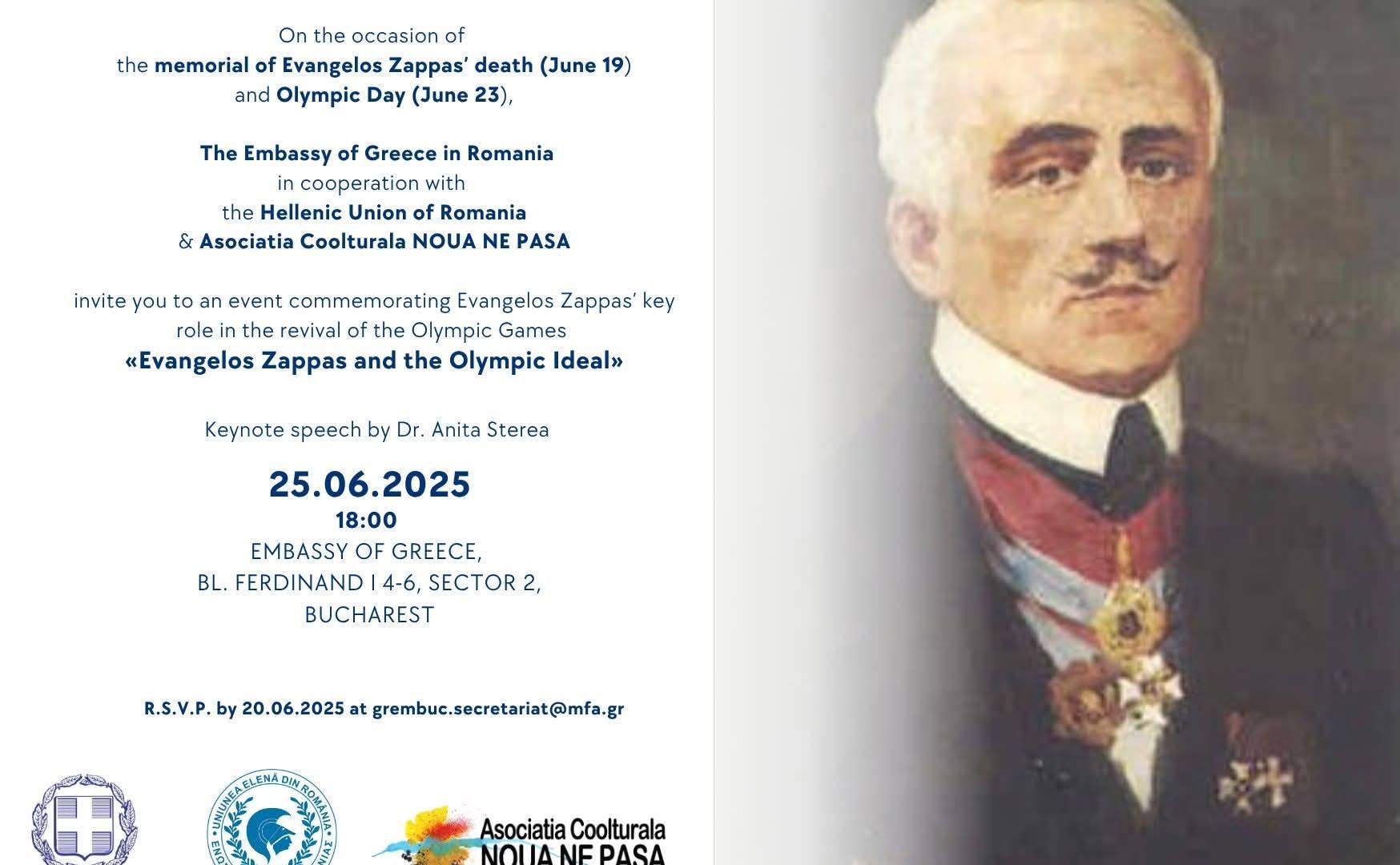 Cu ocazia comemorării morții lui Evangelos Zappas (19 iunie) și a Zilei Olimpice (23 iunie), Ambasada Greciei în România, în cooperare cu Uniunea Elenă din România și Asociația Coolturală „Nouă ne pasă” au organizat un eveniment pentru a marca rolul cheie al lui Evangelos Zappas în renașterea Jocurilor Olimpice.