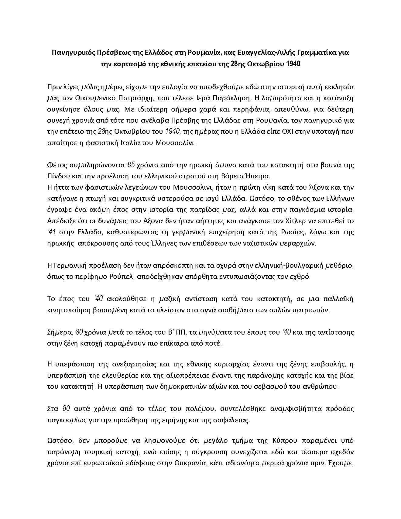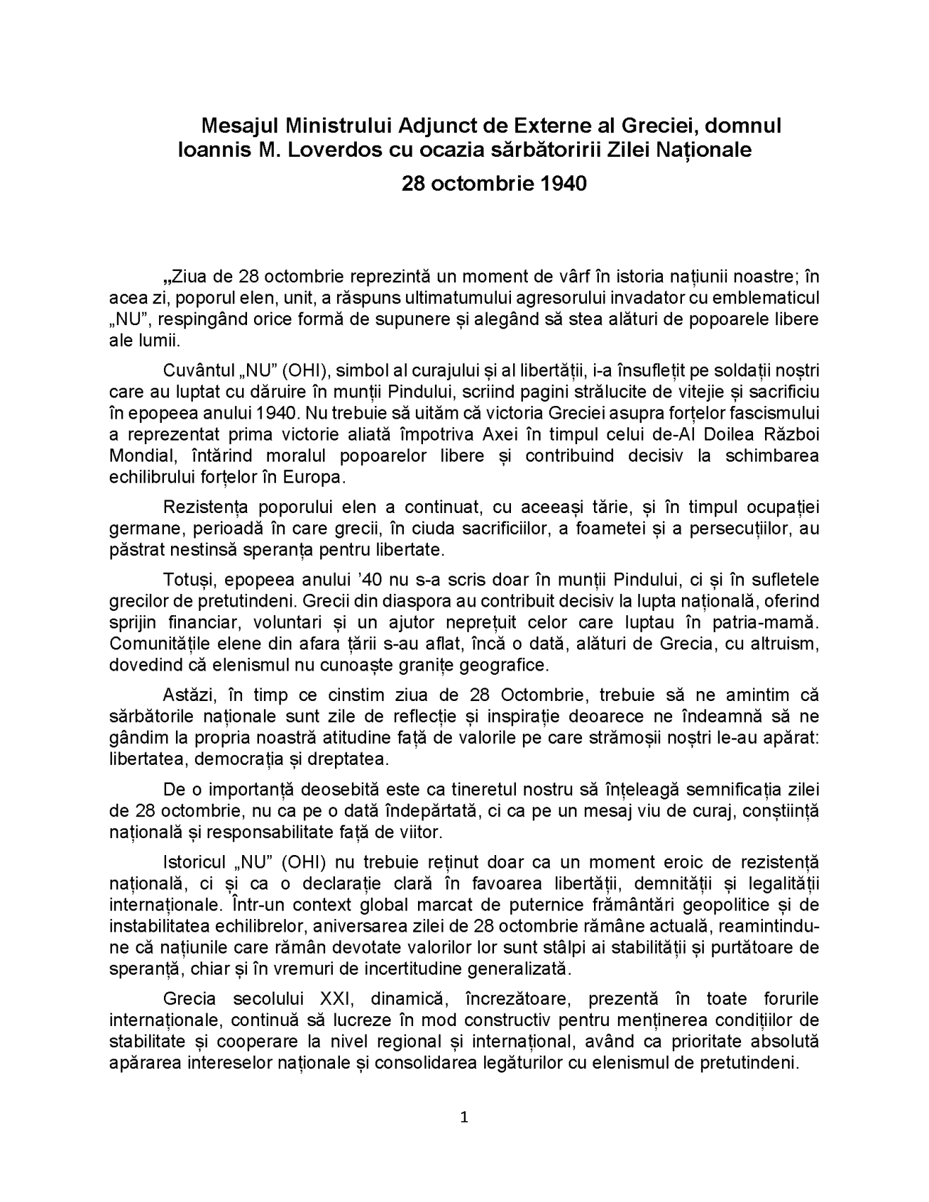 ZIUA MARELU NU – 28 OCTOMBRIE 1940