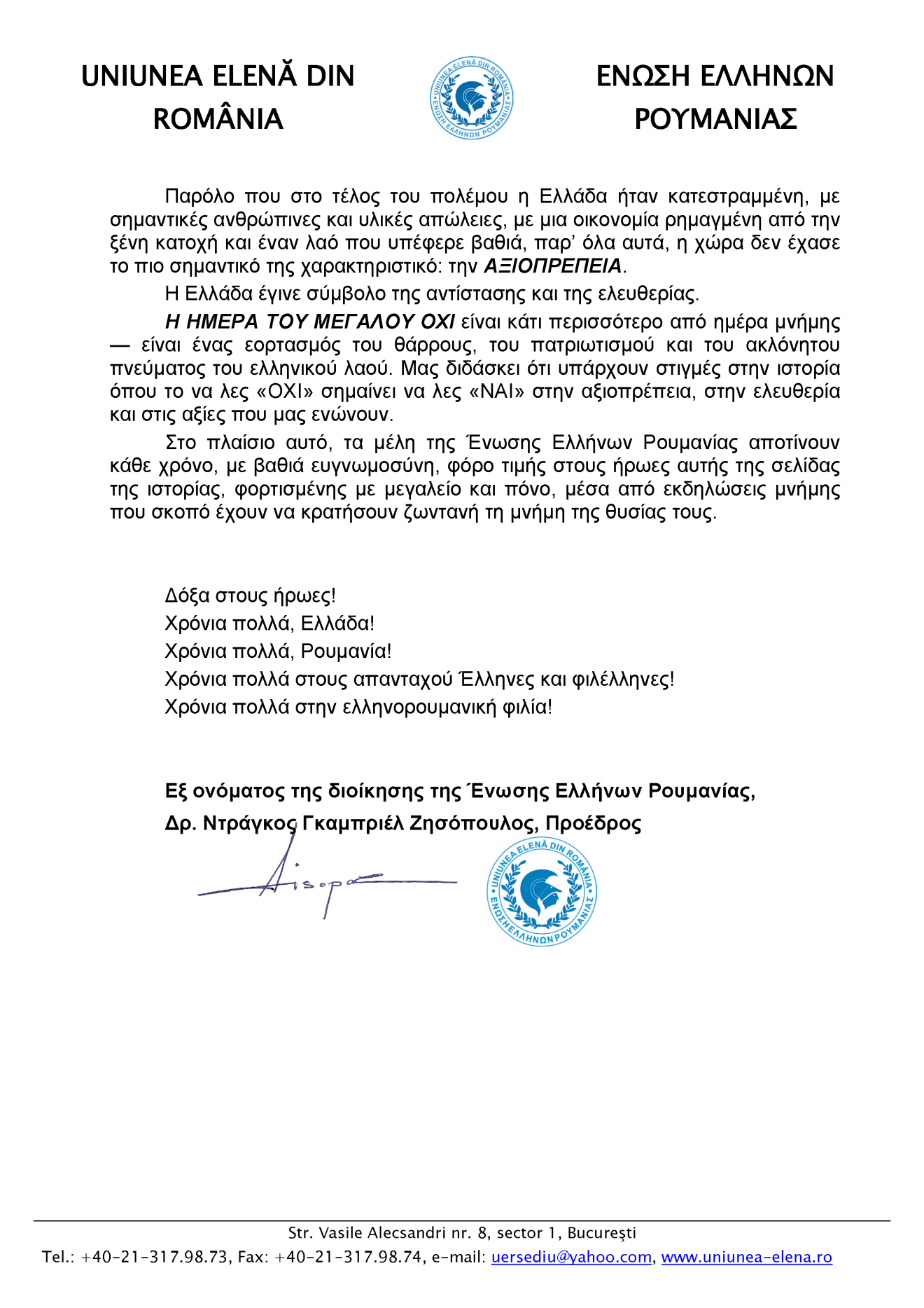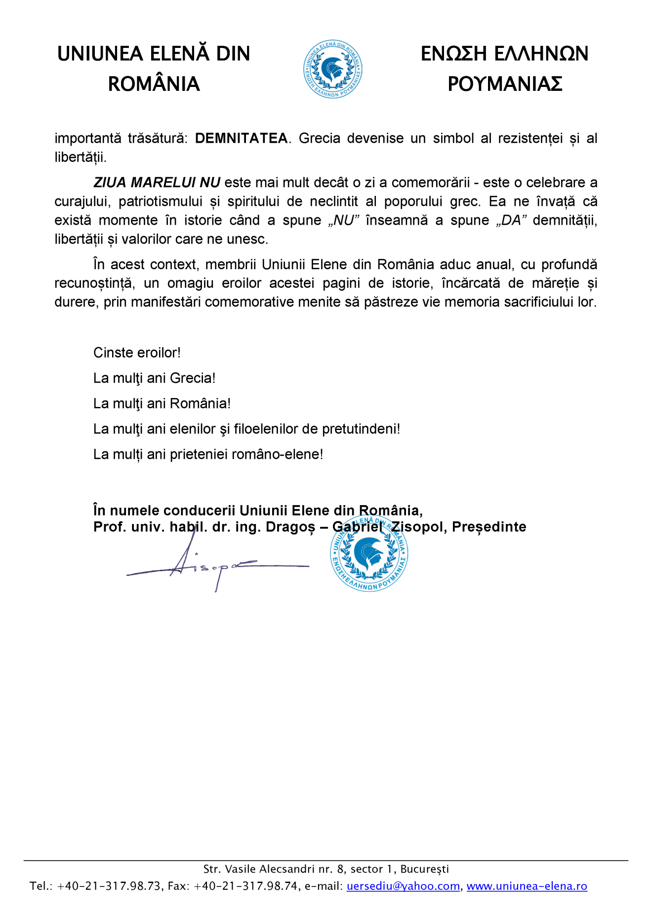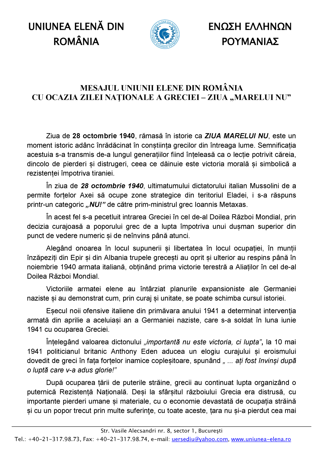 • Alături de Uniunea Elenă din România
