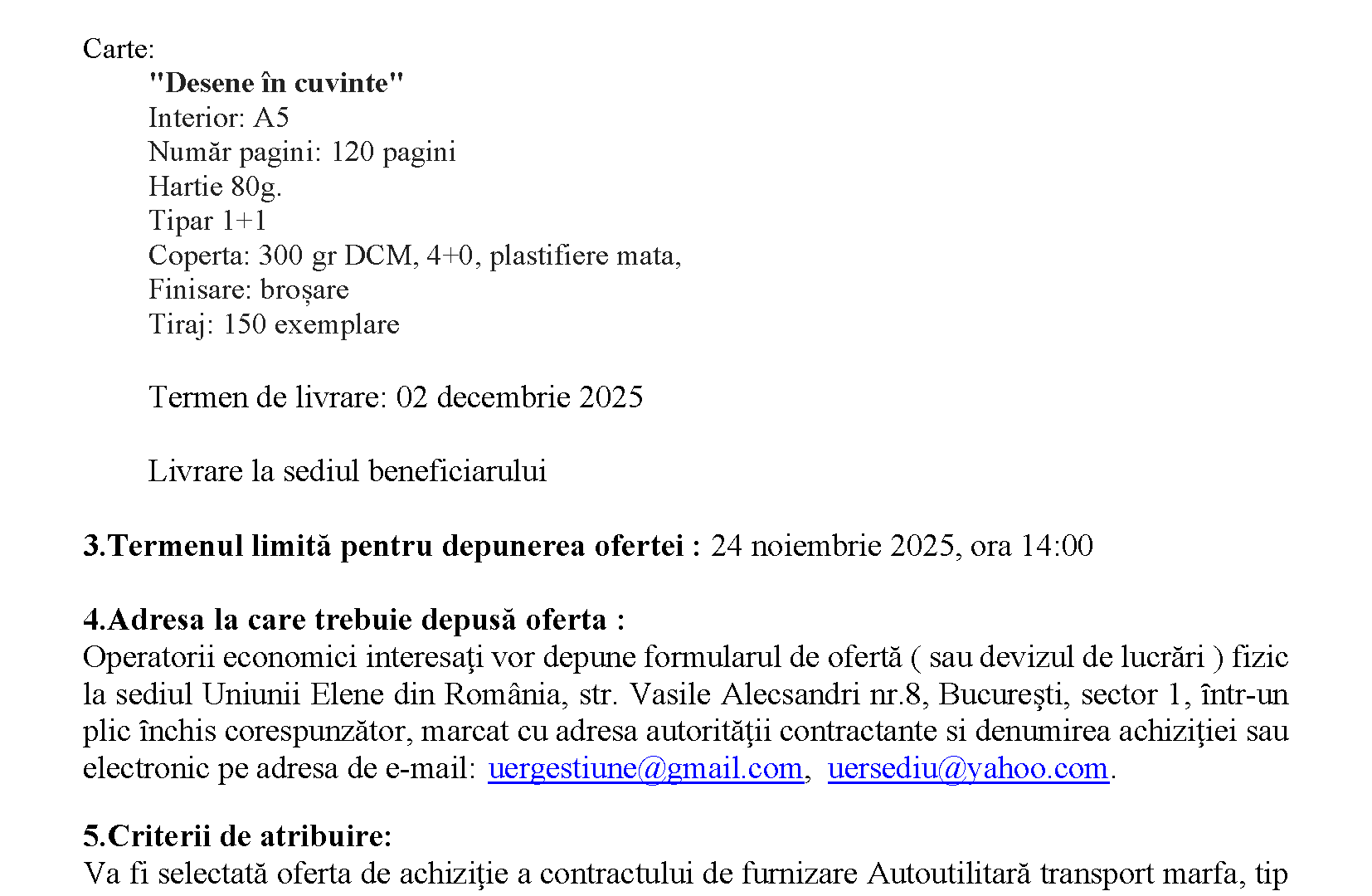 Achiziție servicii de tipar carte „Desene în cuvinte’’ Categorized in: Achizitii Posted on: noiembrie 24, 2025 Last updated on: noiembrie 24, 2025 Written by: Uer Press Skip back to main navigation