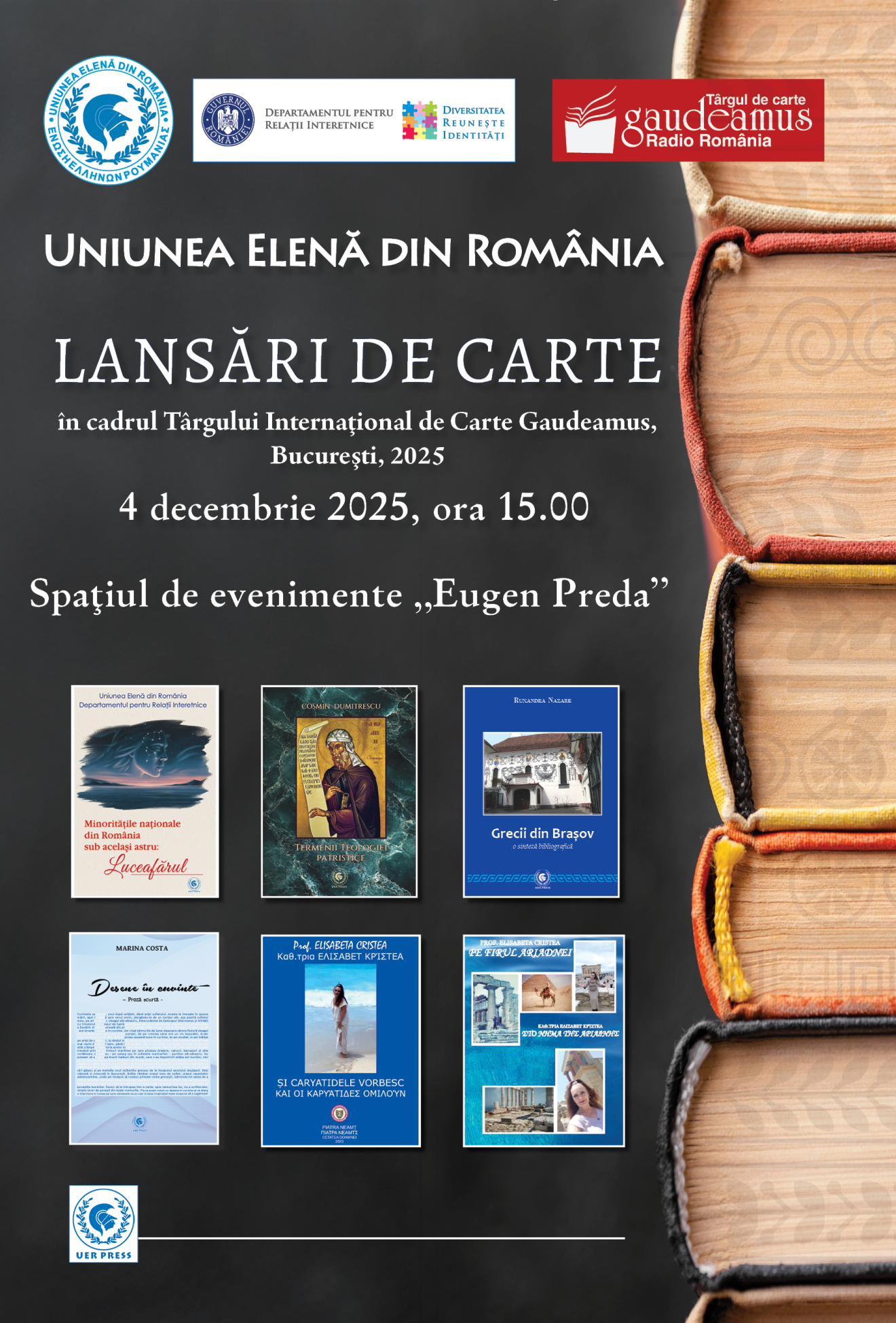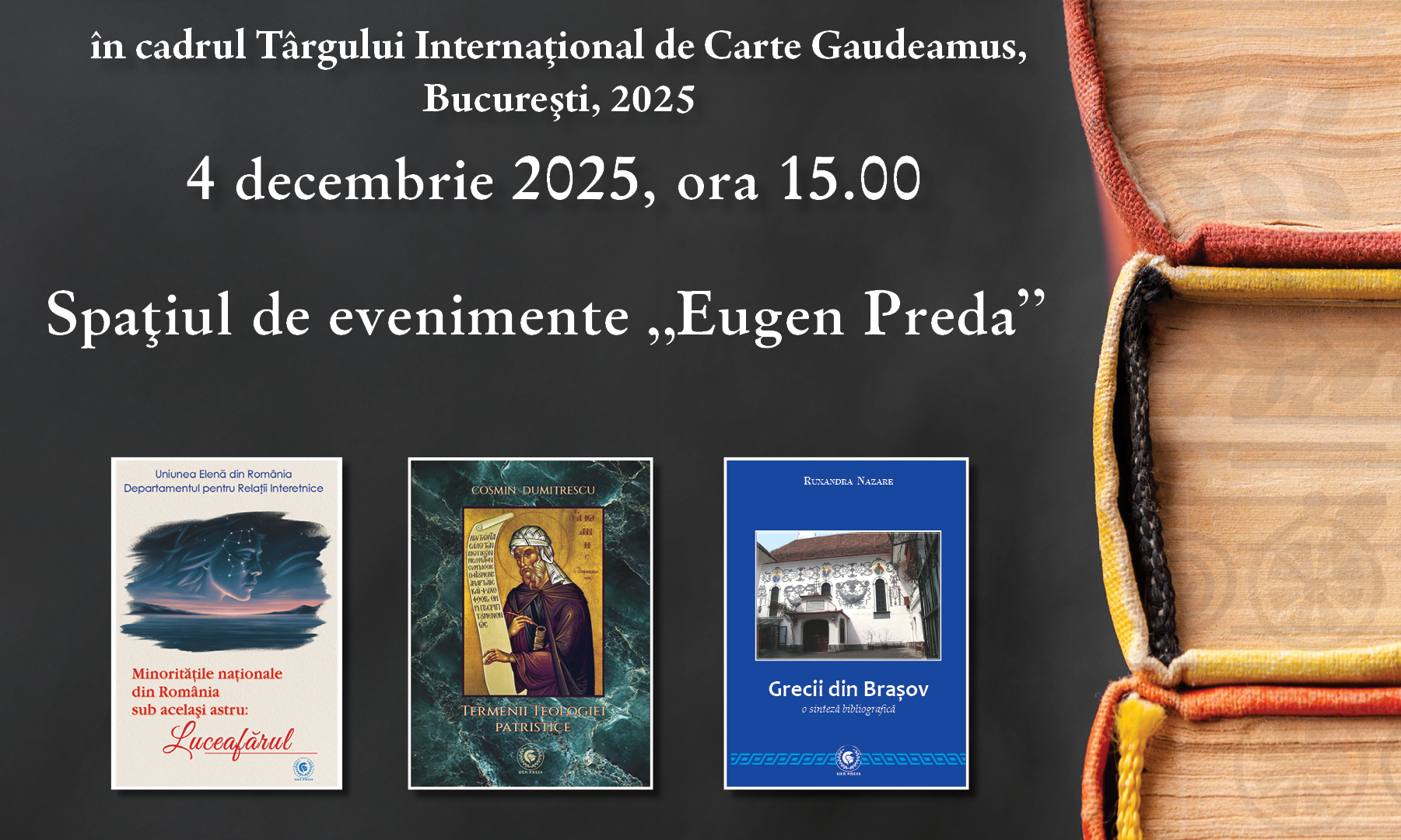 În data de 4 decembrie 2025, în Spațiul de evenimente „Eugen Preda” au fost prezentate cele mai noi publicații ale editurii UER Press.