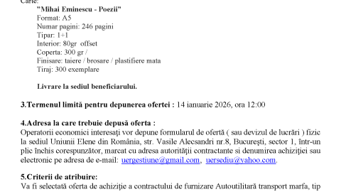 Achiziţie servicii tipărire carte – ”Mihai Eminescu – Poezii”